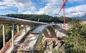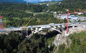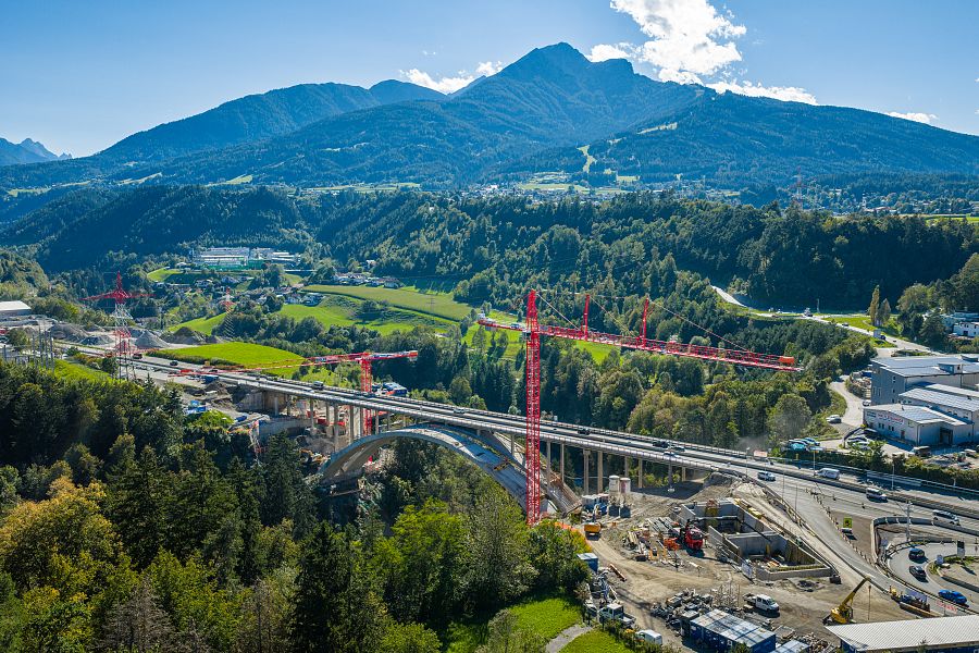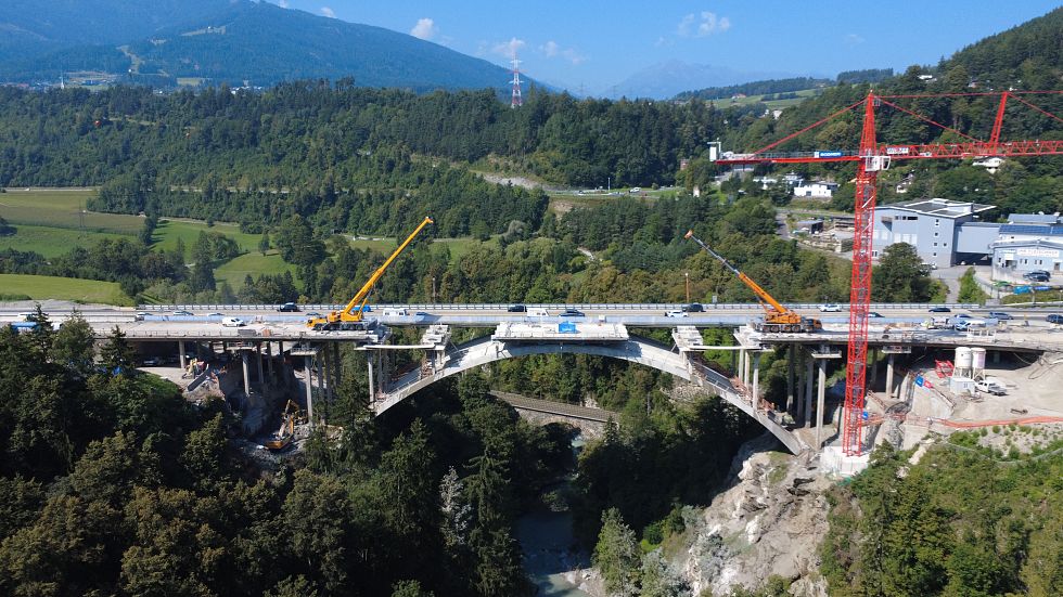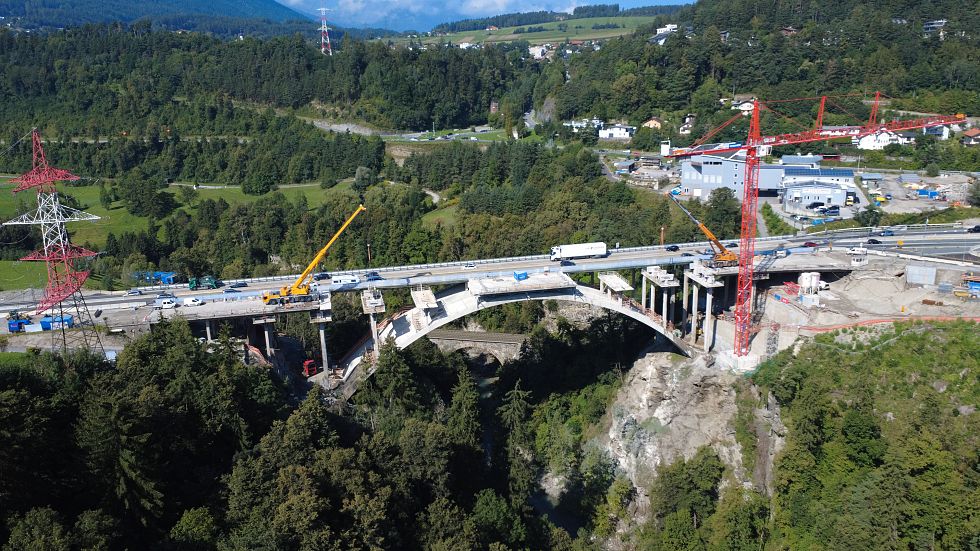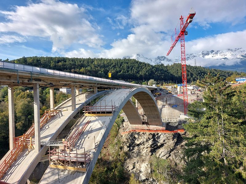 Ebenso erneuerte man die bestehende Entwässerung und baute eine provisorische sowie eine neue Gewässerschutzanlage, welche zusammen mit der neuen Brücke in Betrieb geht. Derzeit laufen die Vorarbeiten für die Errichtung des hydraulisch verschiebbaren Bogenlehrgerüstes, welches neben dem Bestandsbogen mit einer Spannweite von 97 m und einem Einsatzgewicht von 900 t