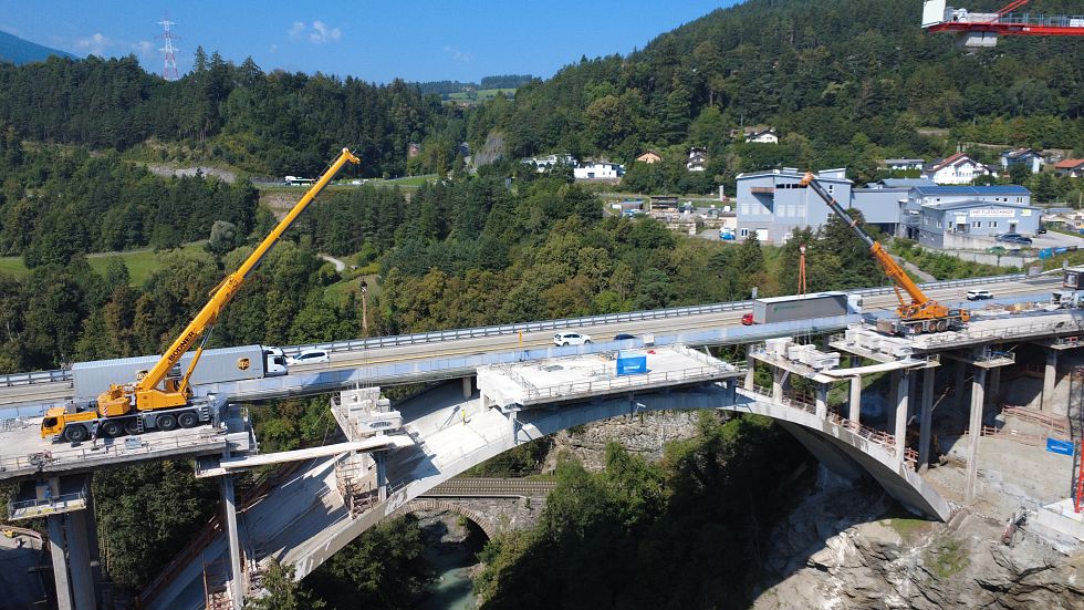 Die Arbeiten an der Sillbrücke II auf der A 13 Brennerautobahn schreiten zügig voran. In den ersten Monaten wurde – bei durchgehender Verkehrsführung über die gesamte Bauphase – die