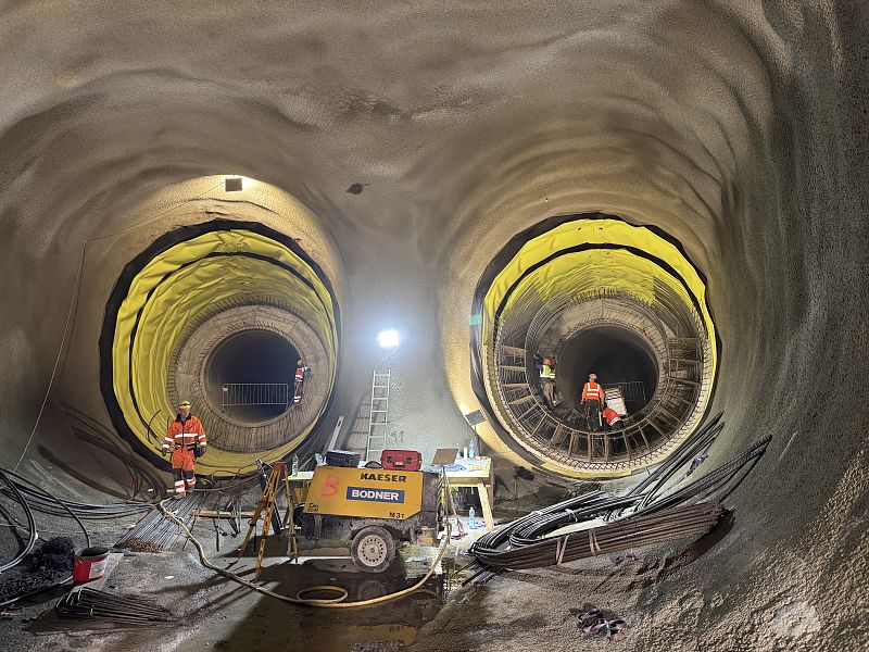 Die zur Herstellung der Beileitung eingesetzte Tunnelbohr-maschine befindet sich mit Mitte Oktober 2025 bei Tunnel-meter 20 500. Im Februar 2026 sollte die Maschine mit dem Durchschlag in die Demontagekaverne im Stubaital ihr Ziel erreichen. Dort beginnt dann die Demontage, um im Juli 2026 das erste Wasser aus den Fassungen einziehen und in Richtung Kühtai leiten zu können.